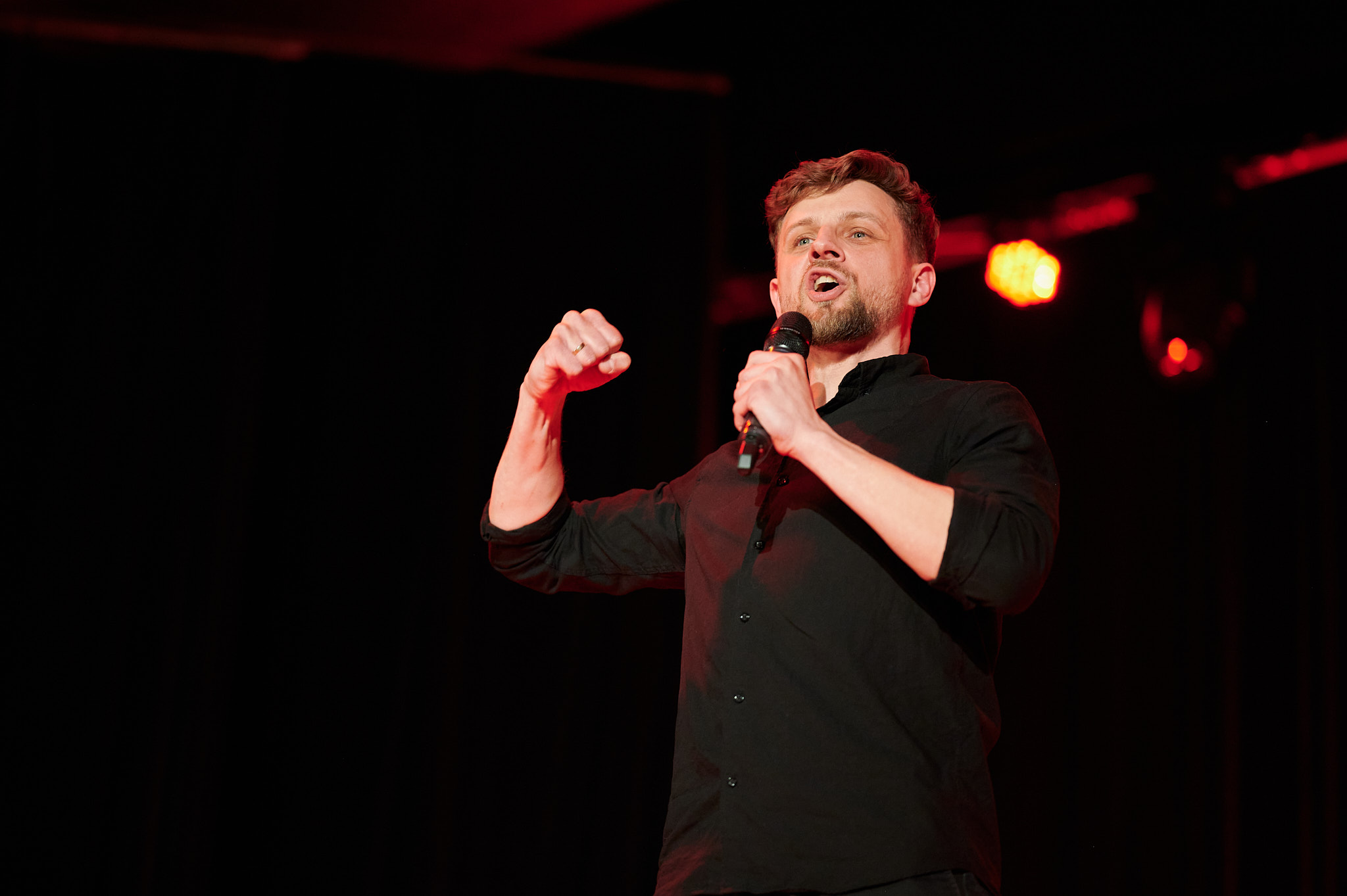 14 marca rymanowskie Kino Sokół stało się miejscem wyjątkowego spotkania z komedią, przyciągając liczną publiczność spragnioną dobrej zabawy. Sala wypełniła się po brzegi, a wieczór od samego początku zapowiadał się jako pełen humoru i pozytywnej energii. Wydarzenie rozpoczął Piotr Przytuła, pełniący rolę supportu. Zaserwował widzom sporą dawkę świetnego humoru i doskonale wprowadził publiczność w nastrój tego komediowego wieczoru.
